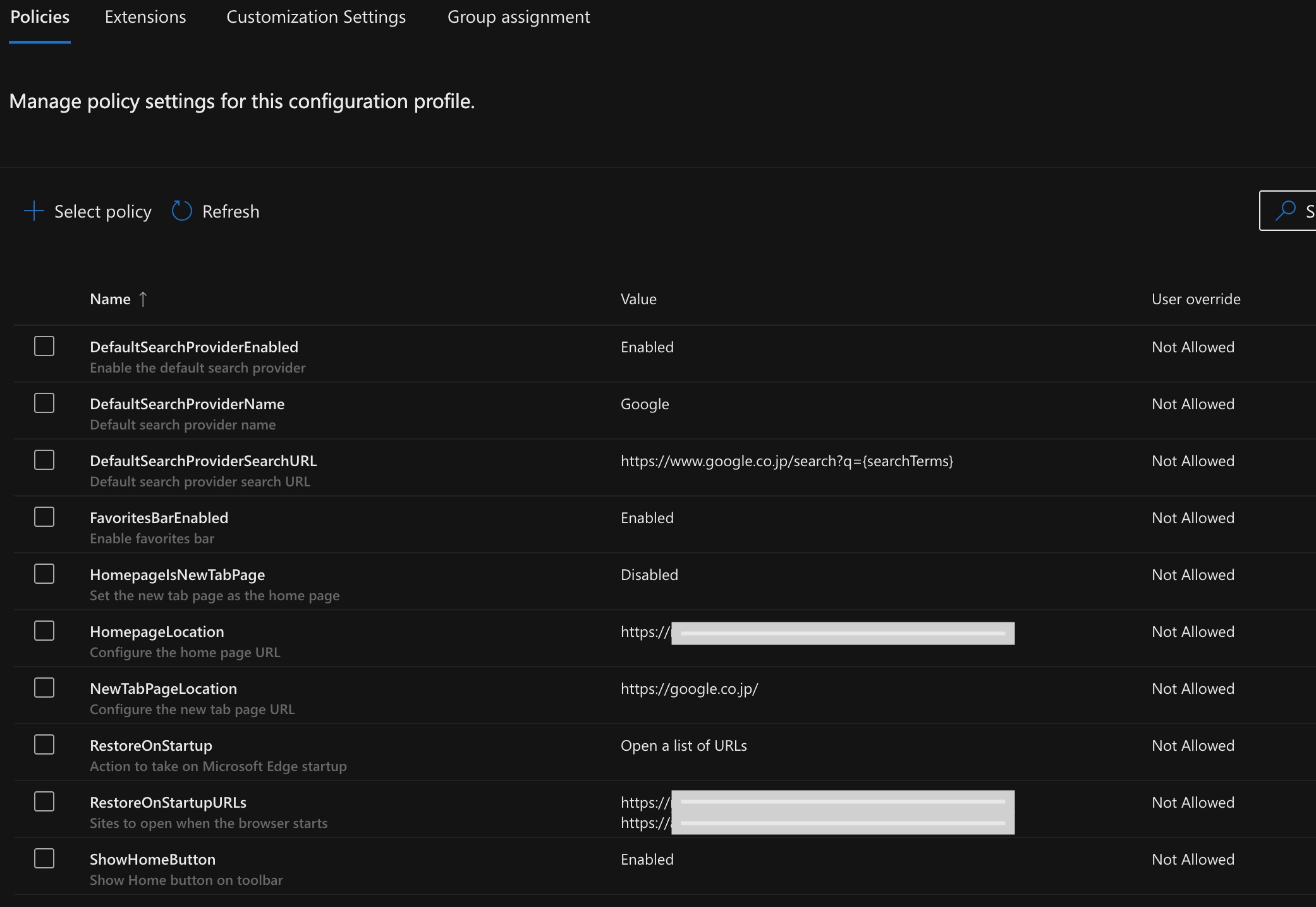 Basicとかのライセンスで会社全体のEdgeを制御するのはこんな感じ